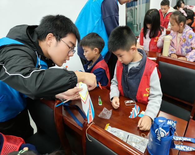 最让孩子们兴奋的环节是航模制作与试飞。在志愿者们“一对一”的悉心指导下,孩子们拿起手中的材料,聚精会神地拼接、粘贴,将一个个零件变成了一架架承载梦想的航模飞机。随后,大家齐聚户外空地,满怀期待地将自己的作品掷向天空。看着亲手制作的航模在空中划出优美的弧线,孩子们的脸上洋溢着无比自豪和喜悦的笑容,欢声笑语回荡在校园上空。
