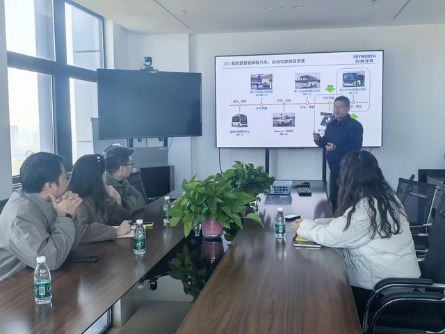 座谈会上,刘立军介绍了公司的发展历程与战略规划,并分享了智能网联汽车领域的前沿技术动态。李晓雯则简要介绍了学校概况与职业教育发展脉络,重点说明了此次调研的目的与合作意向。双方围绕挑战杯、大创赛项目在市场前沿中应用展开了深入交流与研讨,为学院专业人才培养与竞赛项目孵化提供了新思路,也深化了对新能源汽车与低空经济产业链关联的认知。