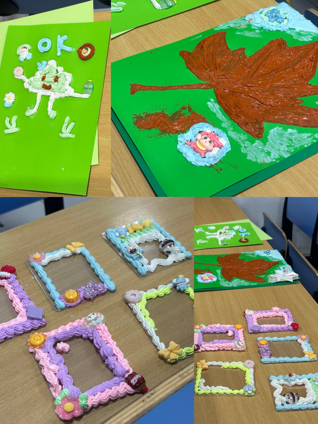 演讲结束后,手工环节将现场气氛推向另一个高潮。马卡龙色奶油胶、缤纷彩纸等材料整齐陈列,同学们自由组队,投入到“雪花折纸”与“创意笔筒”的制作中。折纸区里,大家互帮互助,用心攻克每一道折痕难题,最终一件件点缀着小亮片、蕴藏渐变巧思的雪花作品悄然绽放,在灯光的映照下宛如一场温馨的“人工降雪”;笔筒创作区同样热火朝天,同学们用奶油胶勾勒出独特花纹,粘贴上心仪配件,更不忘写下真挚的青春寄语。每一件作品都独一无二。活动尾声,同学们举着亲手制作的二十余件手工作品拍摄合照,将欢笑定格,让快乐留存。