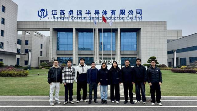 在江苏卓远半导体有限公司,师生一行在企业相关负责人陪同下,深入设备生产与研发一线进行参观学习。通过现场观摩与技术人员的详细讲解,师生们了解了半导体装备的制造流程、核心技术及产业应用情况,对行业前沿动态和企业用人需求有了更直观的认识。