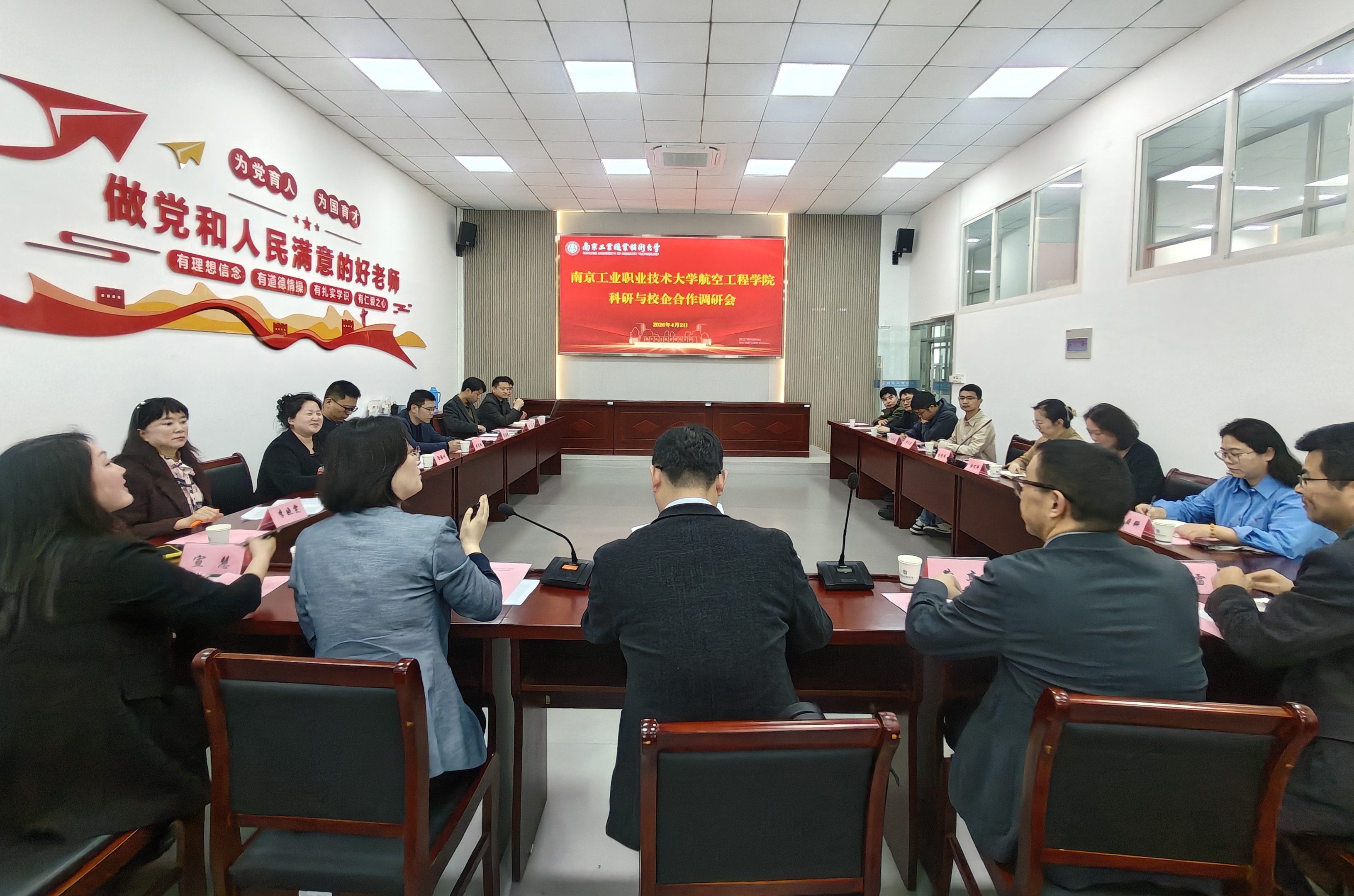 首先,黄杰围绕航空装备类专业布局、校企协同育人、师资队伍建设以及科研团队打造等方面的建设机制与阶段性成效进行了专题汇报。同时,结合学校硕士点培育和“双高”建设等重点工作,汇报了学院在学科方向凝练、科研平台搭建、成果转化路径等方面的具体规划。徐滕州分享了近年来学院的学科定位、研究方向、科研成果以及构建科研生态的思路。随后,各系部主任结合各自专业特点,汇报了科研项目立项、论文与专利成果产出、科研团队建设、青年教师发展等情况。学院教师结合自身科研工作实践与教学经验,展开了深入交流,并提出了合理化建议。