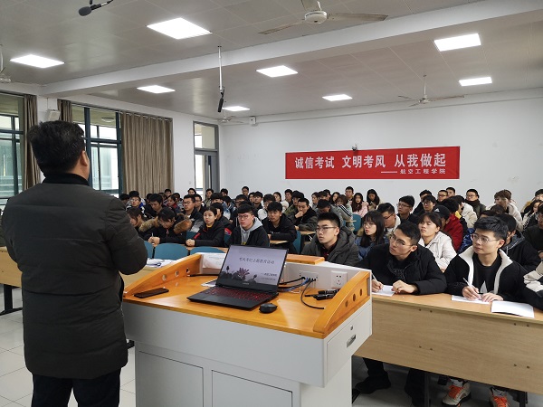 为进一步推动学院学风建设,大力加强学生的诚信教育,增强学生遵章守纪意识,树立和培养良好的考风,消除考试作弊现象,树立大学生良好形象,12月19日中午,航空工程学院在乐群楼202教室召开考风考纪专题教育大会,航空工程学院党总支副书记、副院长孙军伟,辅导员及全体学生干部共计96人出席了本次大会。